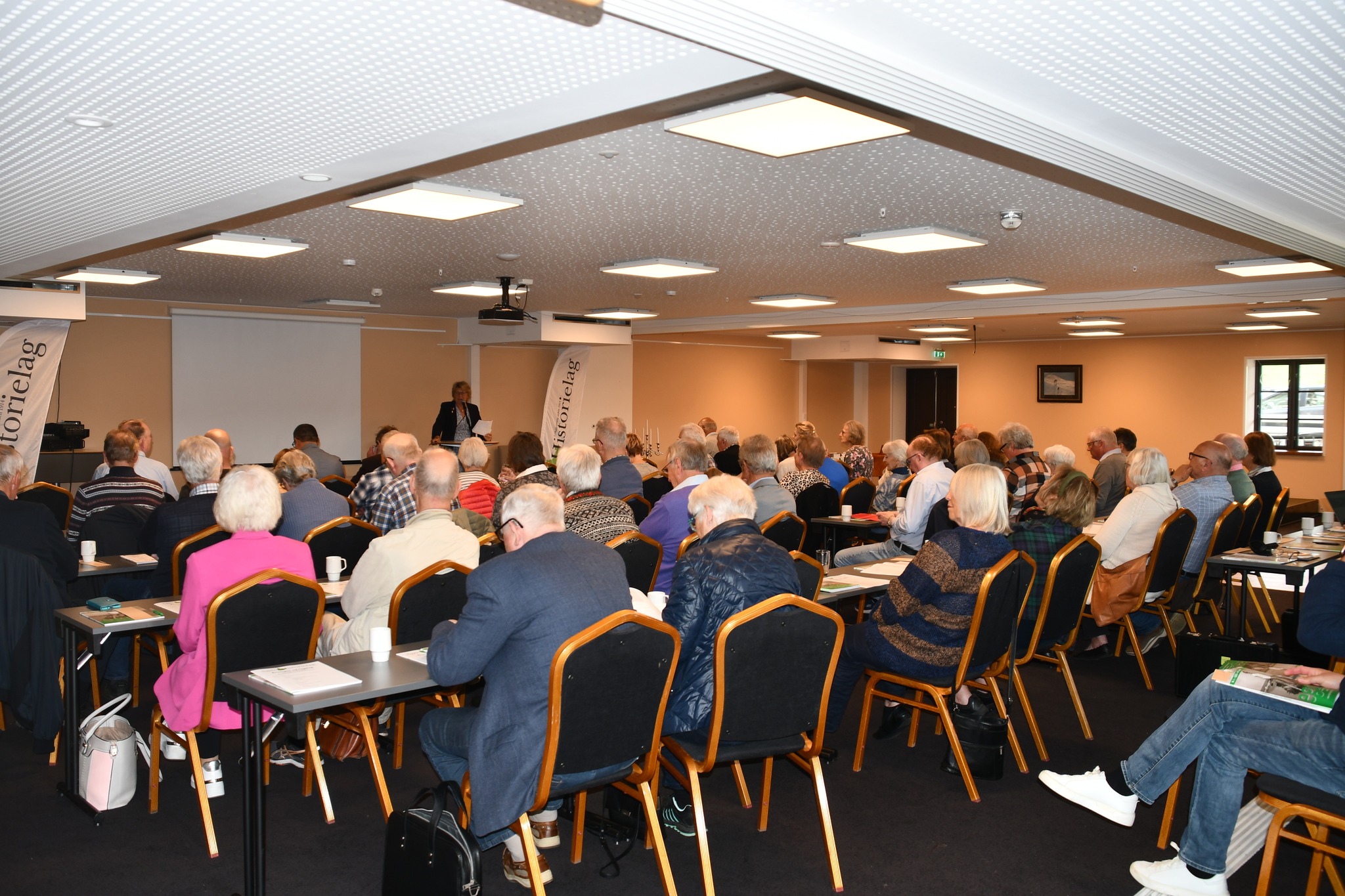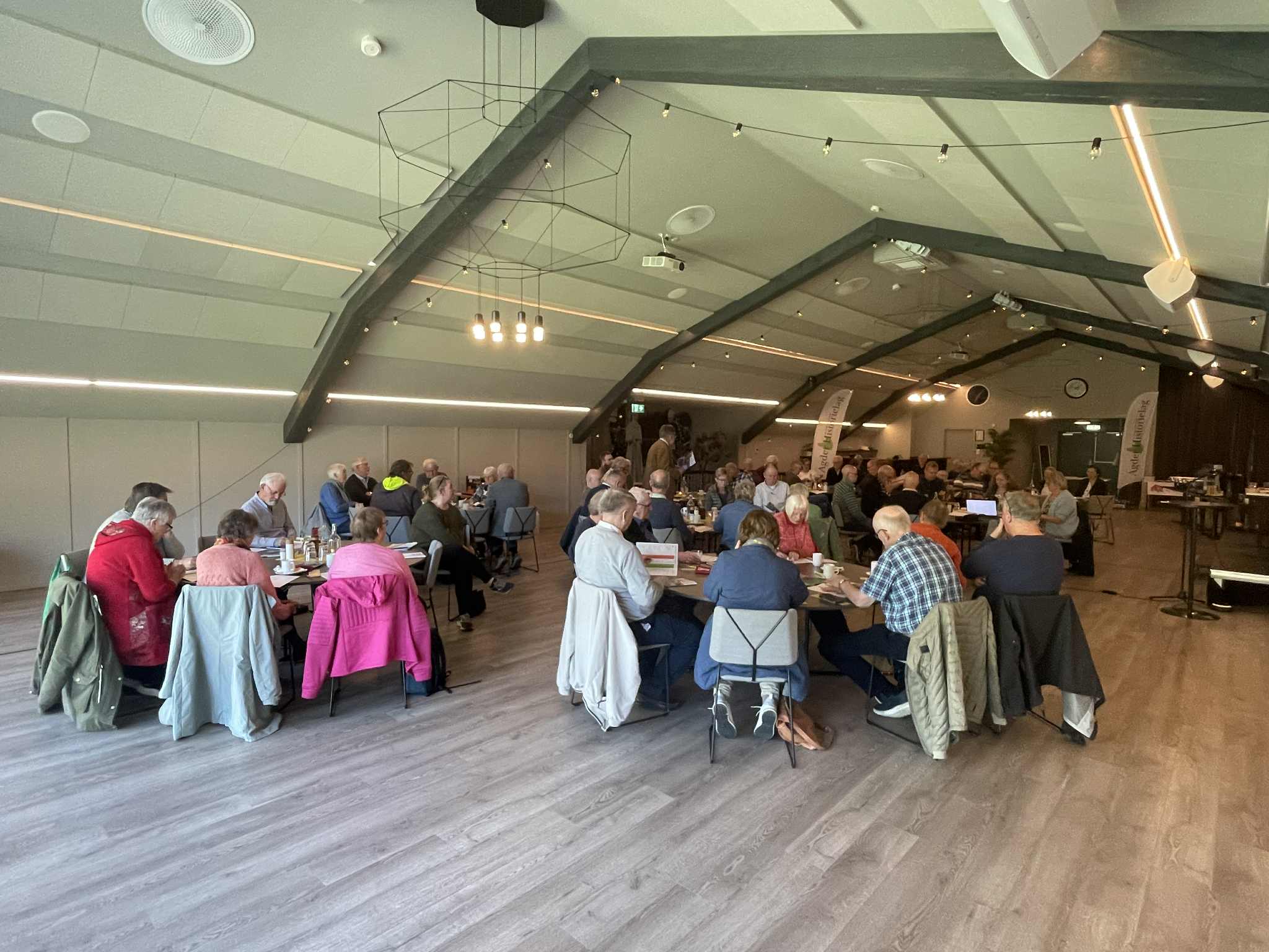 God atmosfære på årsmøtet 2023. 70 mennesker var samlet på Eikerapen den 13. mai for å gjennomføre årsmøtet til Agder Historielag med flotte foredrag, kulturinnslag og hygge.
